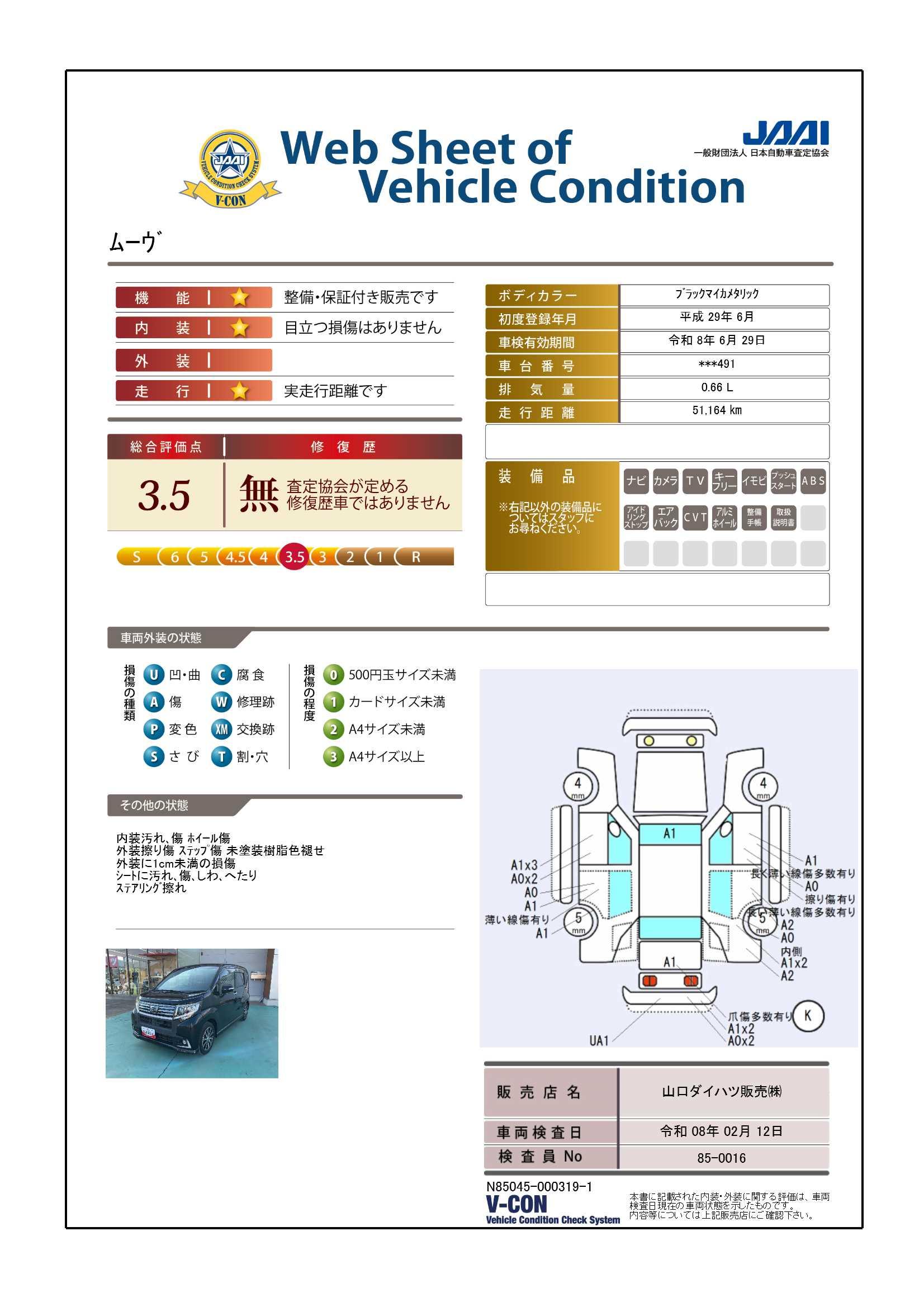 現状の車両の状態に関しましては必ず販売店に確認をお願いします。(2008年10月からの評価基準改定により、一部の車両につき店頭の評価表記と違う場合がございます。詳しくは販売店にお問い合わせください。