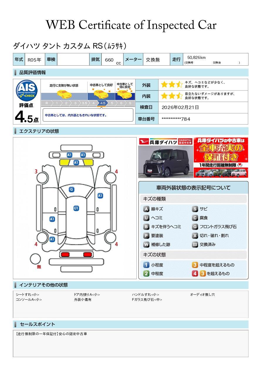 車両状態証明書が付いておりますので、安心してお選び出来ます。詳しくは、スタッフまでお気軽にお問合せください。