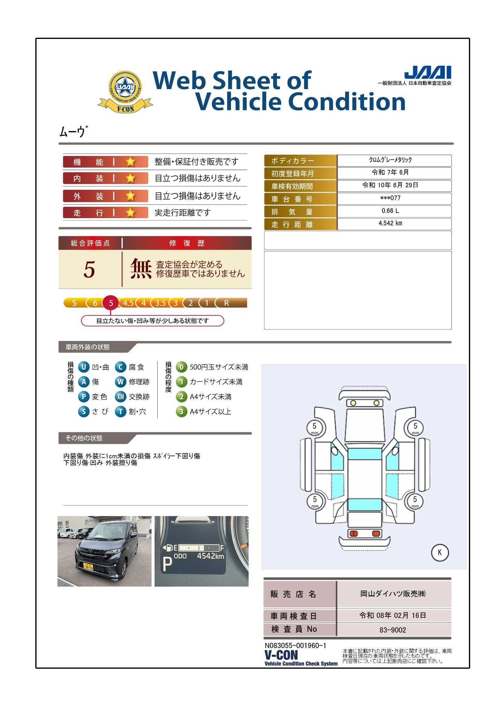 現状の車両の状態に関しましては必ず販売店に確認をお願いします。(2008年10月からの評価基準改定により、一部の車両につき店頭の評価表記と違う場合がございます。詳しくは販売店にお問い合わせください。
