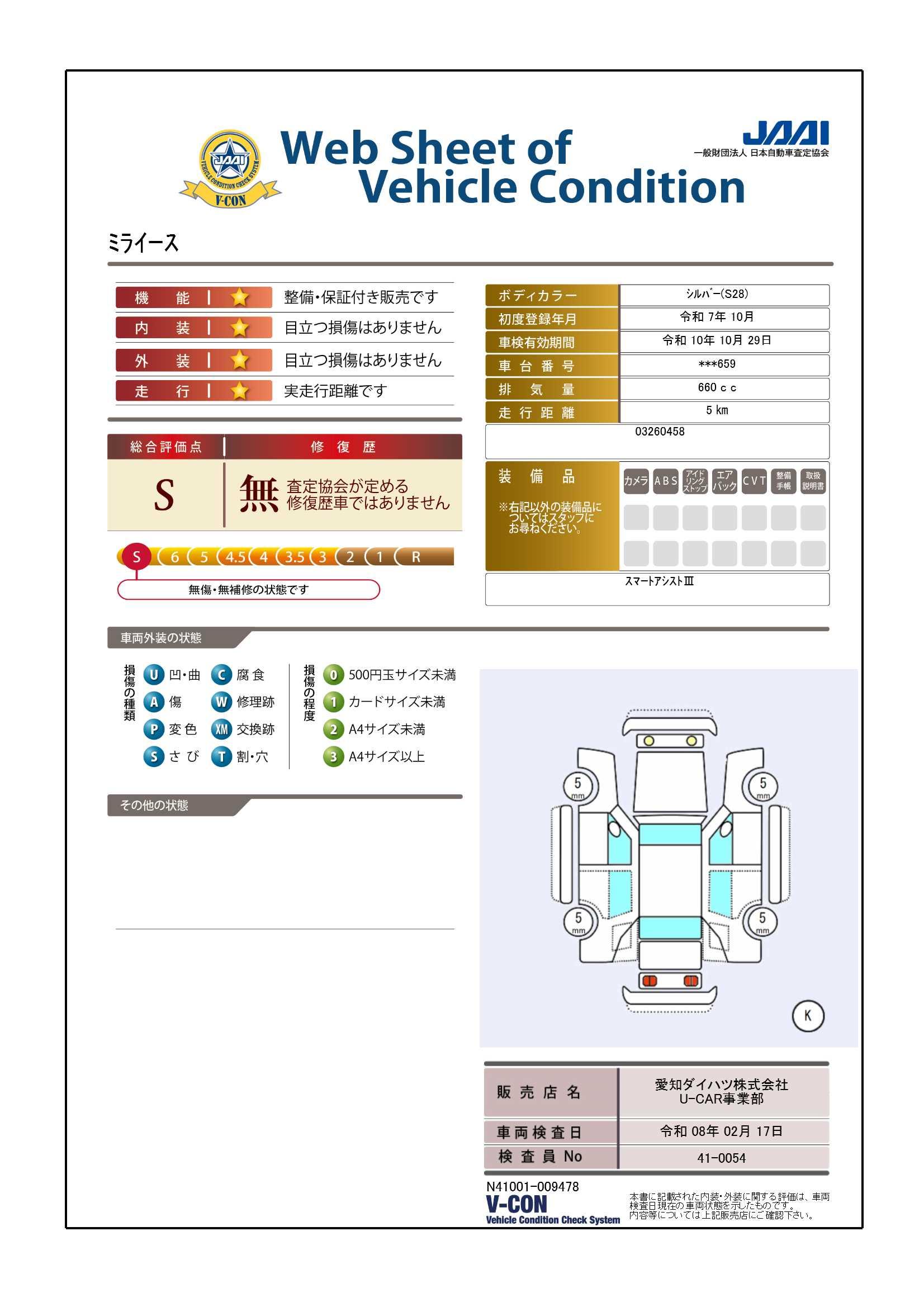 | 定期点検整備コメント | 定期点検整備:付、定期点検整備料金:車両価格に含む | ||