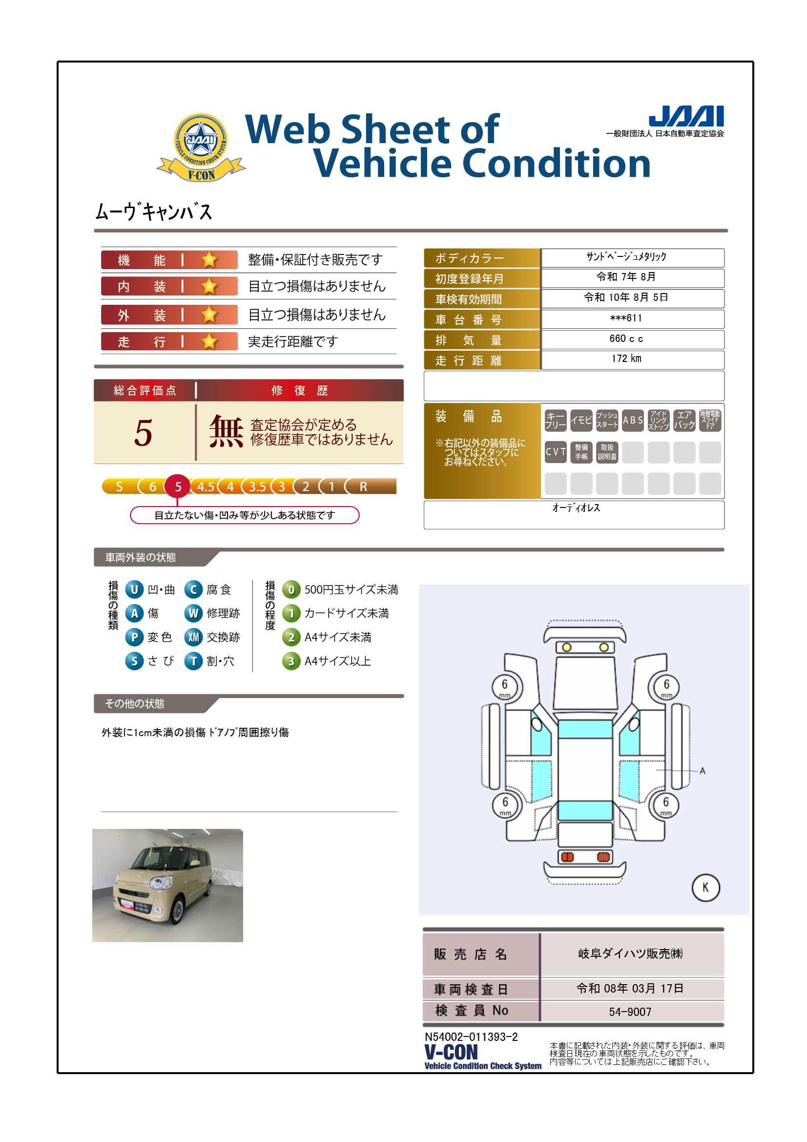現状の車両の状態に関しましては必ず販売店に確認をお願いします。(2008年10月からの評価基準改定により、一部の車両につき店頭の評価表記と違う場合がございます。詳しくは販売店にお問い合わせください。