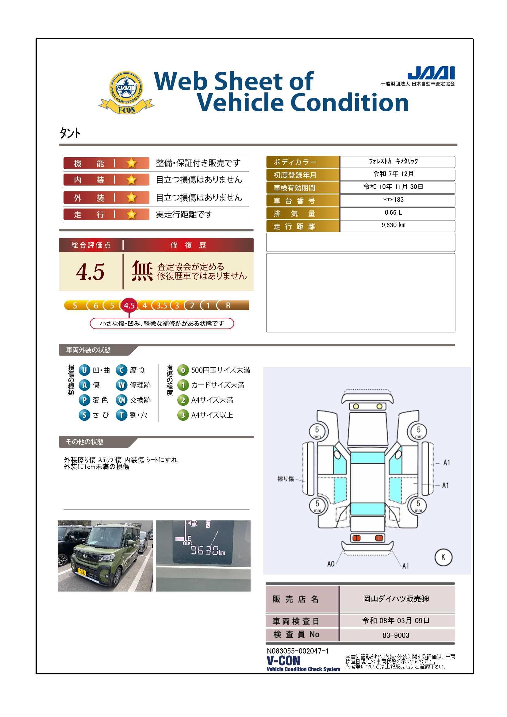 現状の車両の状態に関しましては必ず販売店に確認をお願いします。(2008年10月からの評価基準改定により、一部の車両につき店頭の評価表記と違う場合がございます。詳しくは販売店にお問い合わせください。