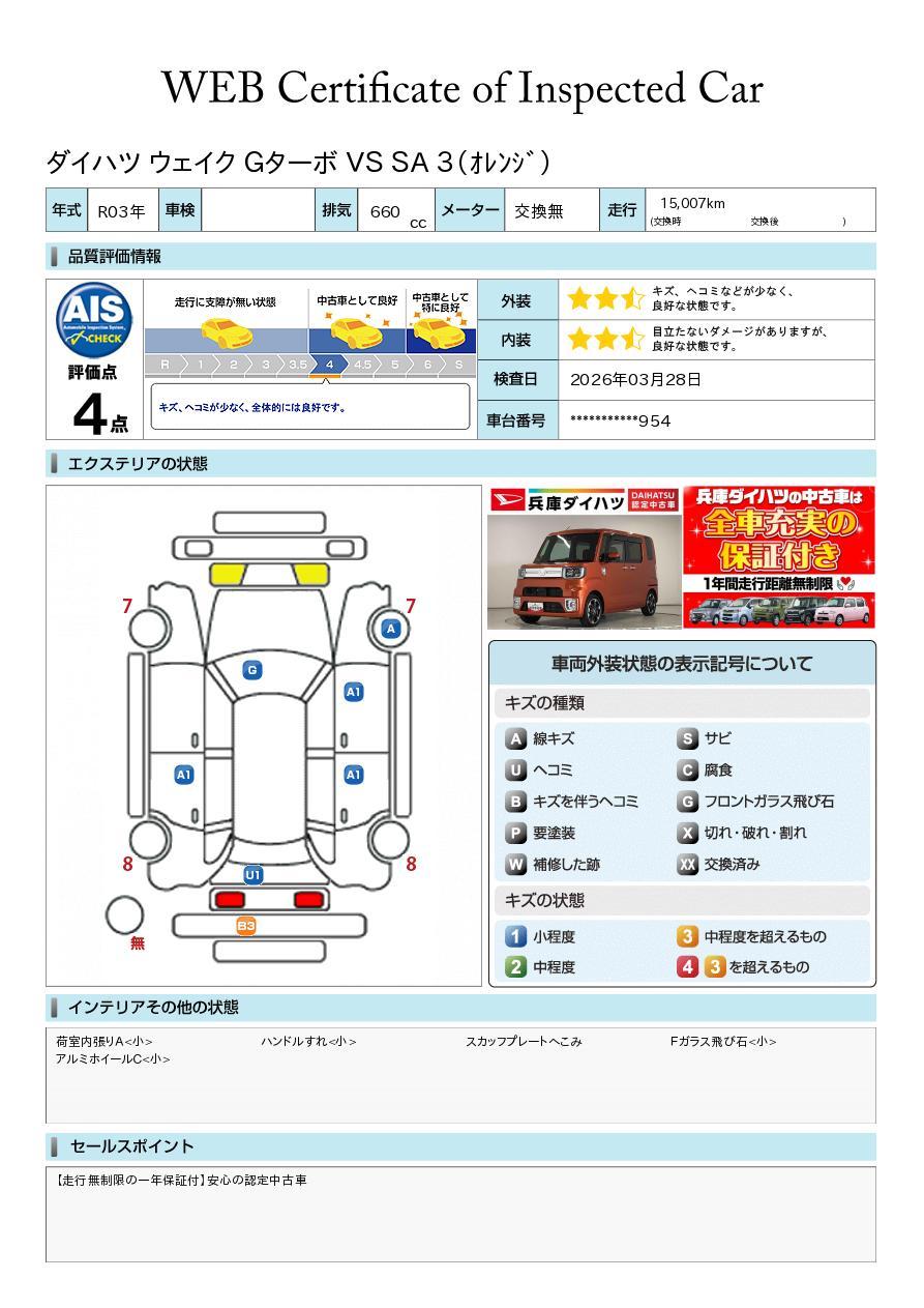 株式会社AISの車両状態証明書となります。