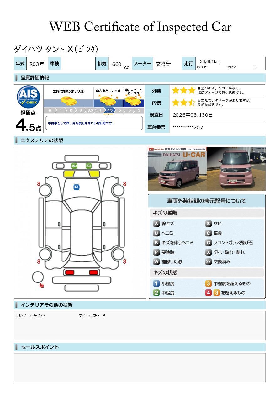 ダイハツ認定中古車なら展示車両の状態を開示しております。展示車両に自信があるからこそ出来るサービスです。