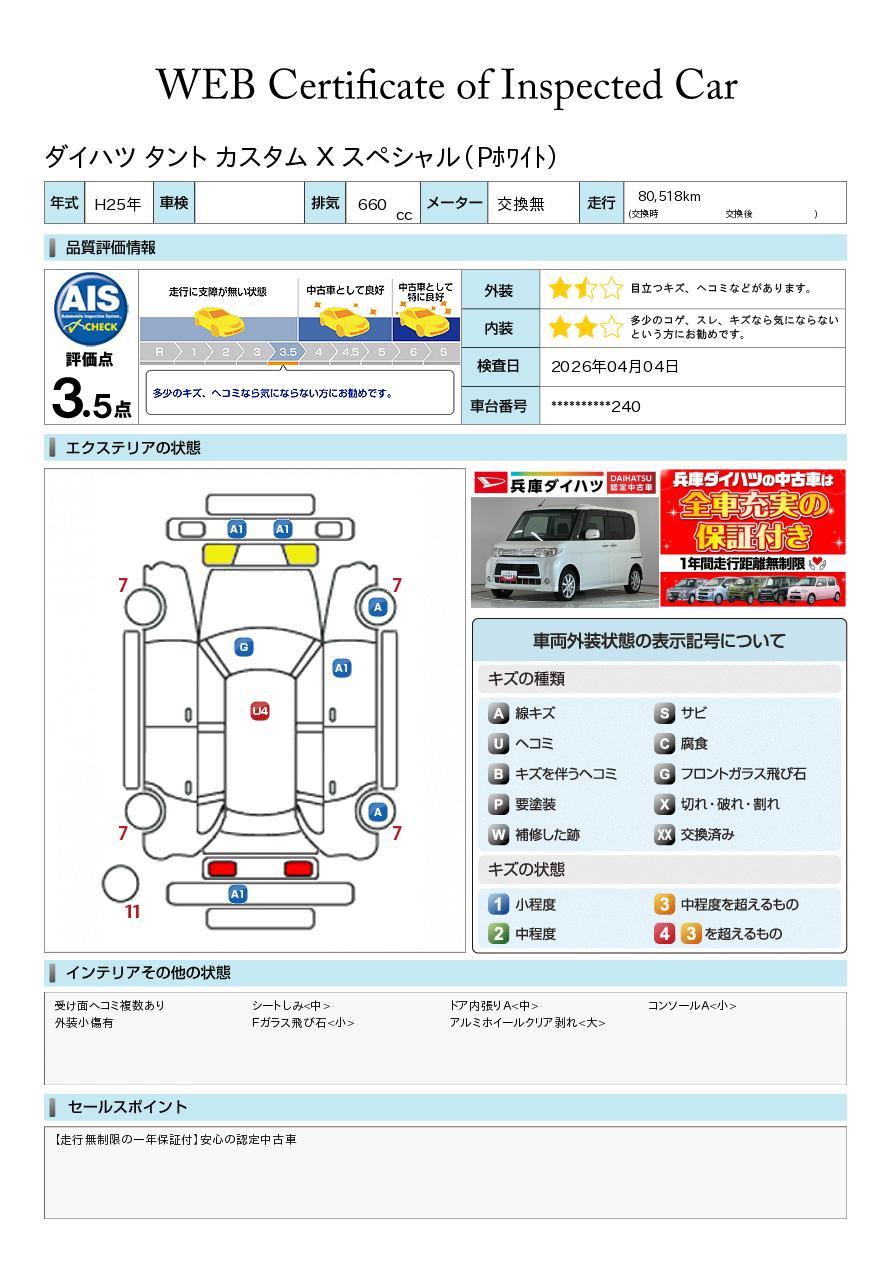 ダイハツ認定中古車なら展示車両の状態を開示しております。展示車両に自信があるからこそ出来るサービスです。