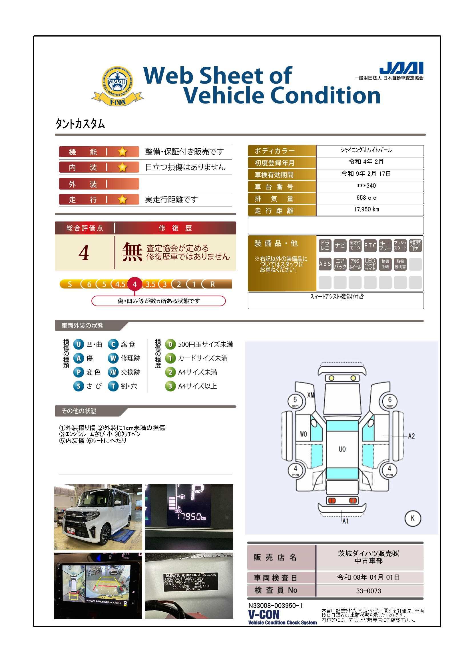 現状の車両の状態に関しましては必ず販売店に確認をお願いします。(2008年10月からの評価基準改定により、一部の車両につき店頭の評価表記と違う場合がございます。詳しくは販売店にお問い合わせください。